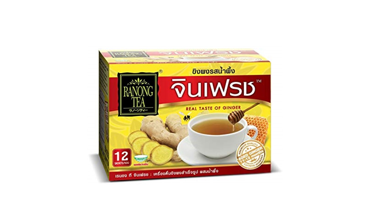 Ranong Tea Instant Ginger Drink Natural Honey dibuat dari jahe segar berusia 11 hingga 12 bulan. Rasa yang sangat khas menjadikannya teh jahe instan favorit di Thailand. Tidak mengandung bahan pengawet atau pewarna buatan.